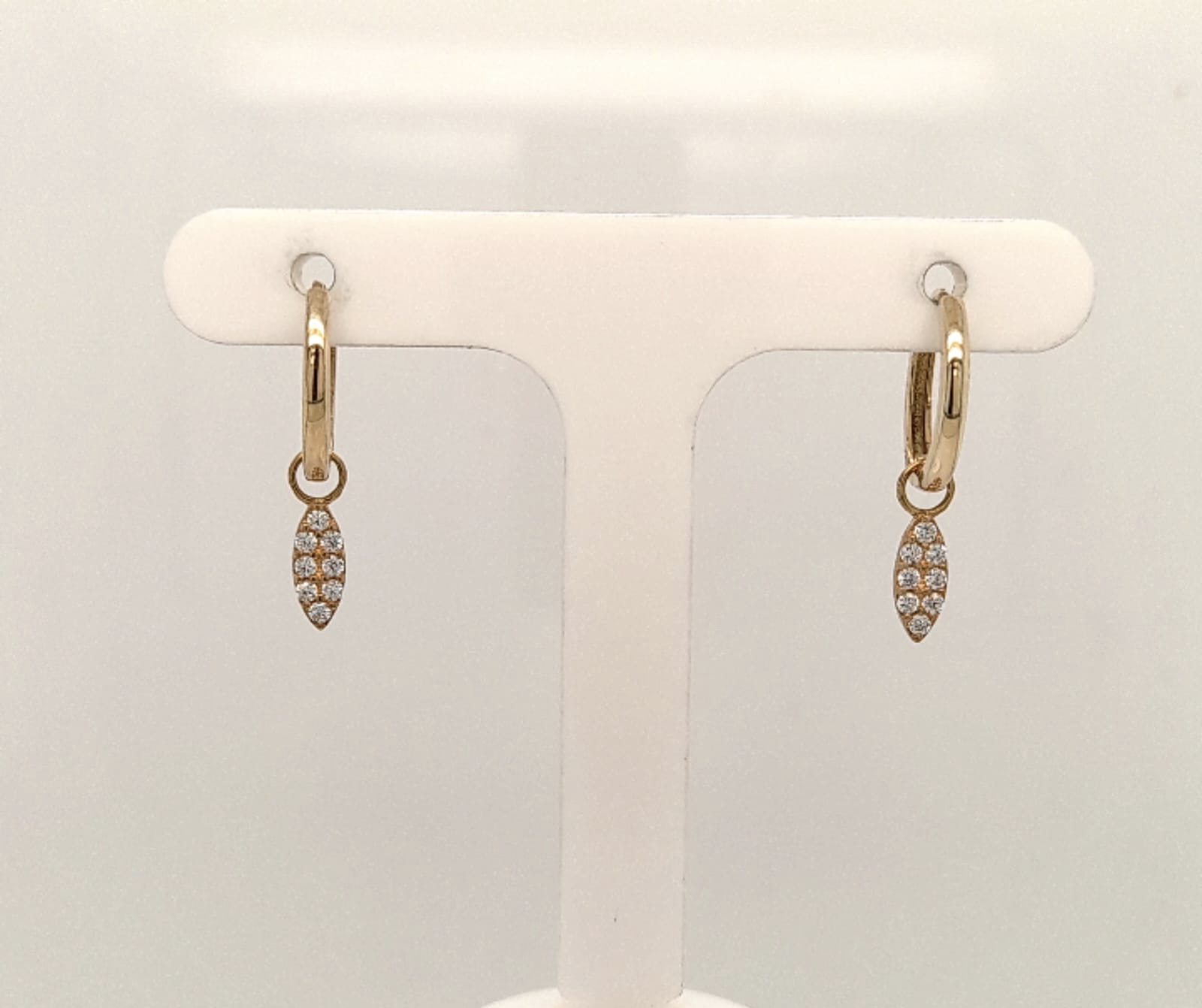 9ct Yellow Gold Hoops with Pave set Charm Earrings