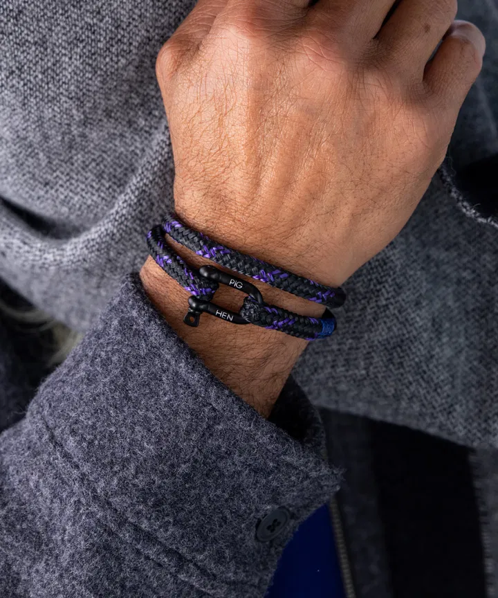 Pig & Hen Salty Steve Royal Purple, Black Bracelet