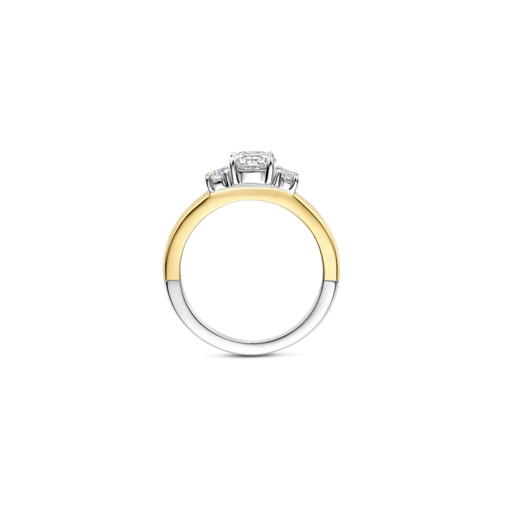 This 18ct gold vermeil ring with zirconia stones is crafted from high-quality 925 sterling silver and features a refined, timeless design. The ring is finished with three centrally placed zirconia stones that create a balanced composition and elegant sparkle. The slim band keeps the design clean and refined, allowing the stones to stand out beautifully.