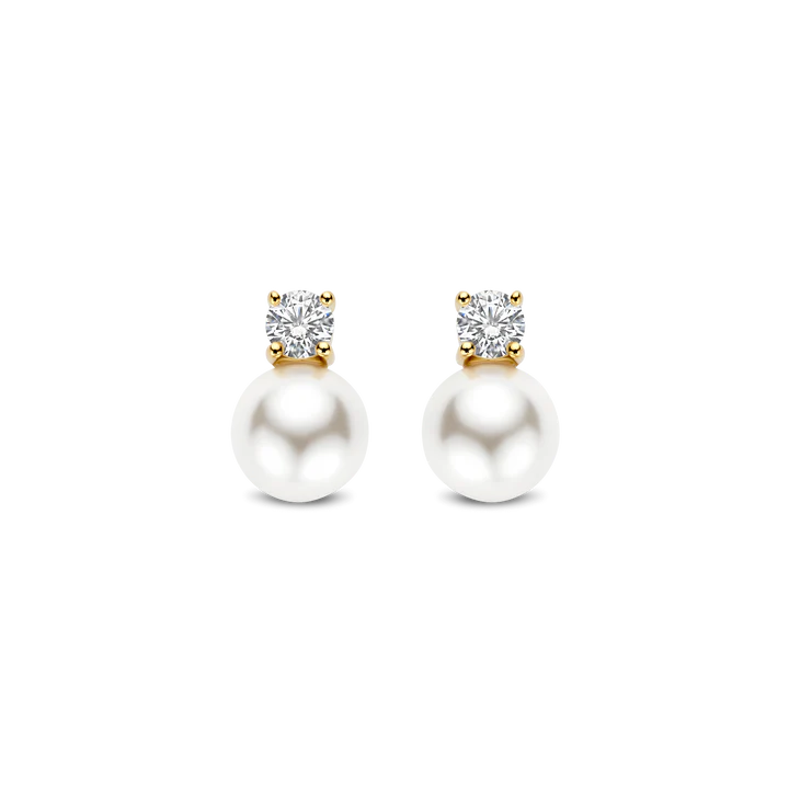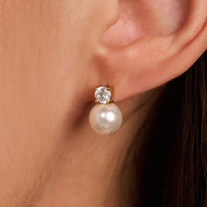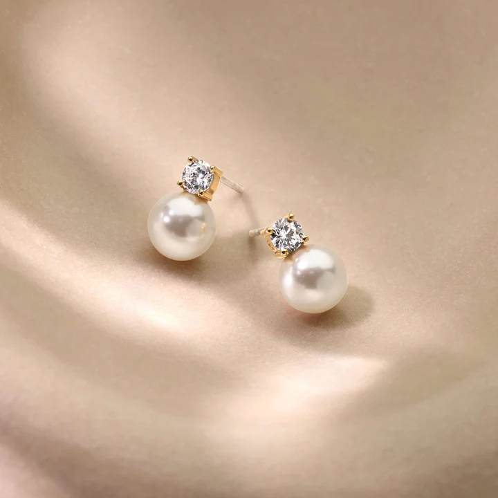 These zirconia pearl earrings are crafted from high-quality 925 sterling silver and designed as refined stud earrings. Above the pearl, a brilliant zirconia stone is set in an 18k gold-plated setting, creating a warm contrast with the silver and the soft lustre of the pearl. The pearl is finished with a smooth, luminous surface that enhances its elegant appearance.